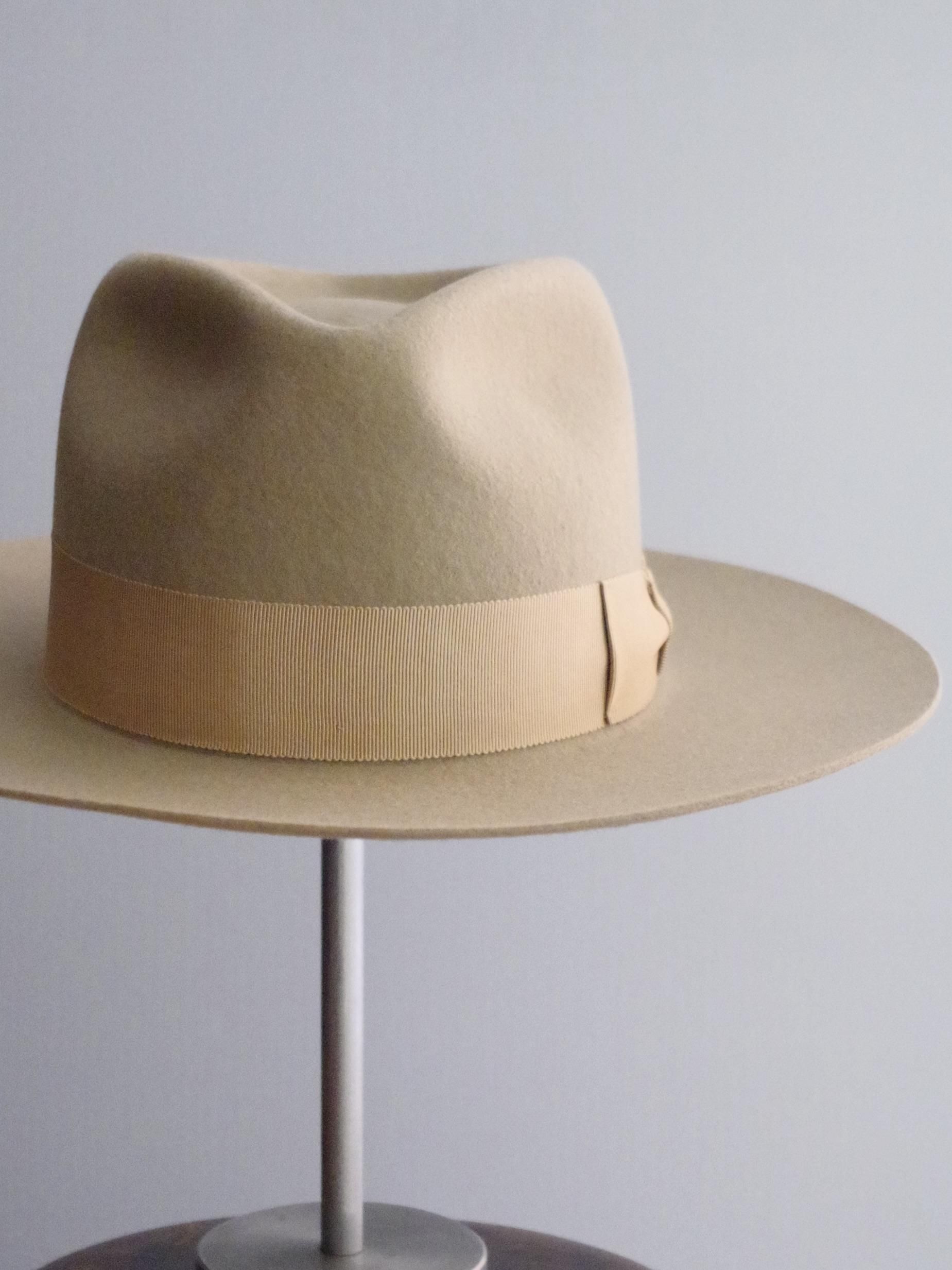 50’S アメリカンヴィンテージ ハットを彷彿させるティアドロップシェイプの黄金比を踏襲したデザインながら、ブリムの周囲にあしらうパイピングテープを付けないスッキリとした仕上がり。