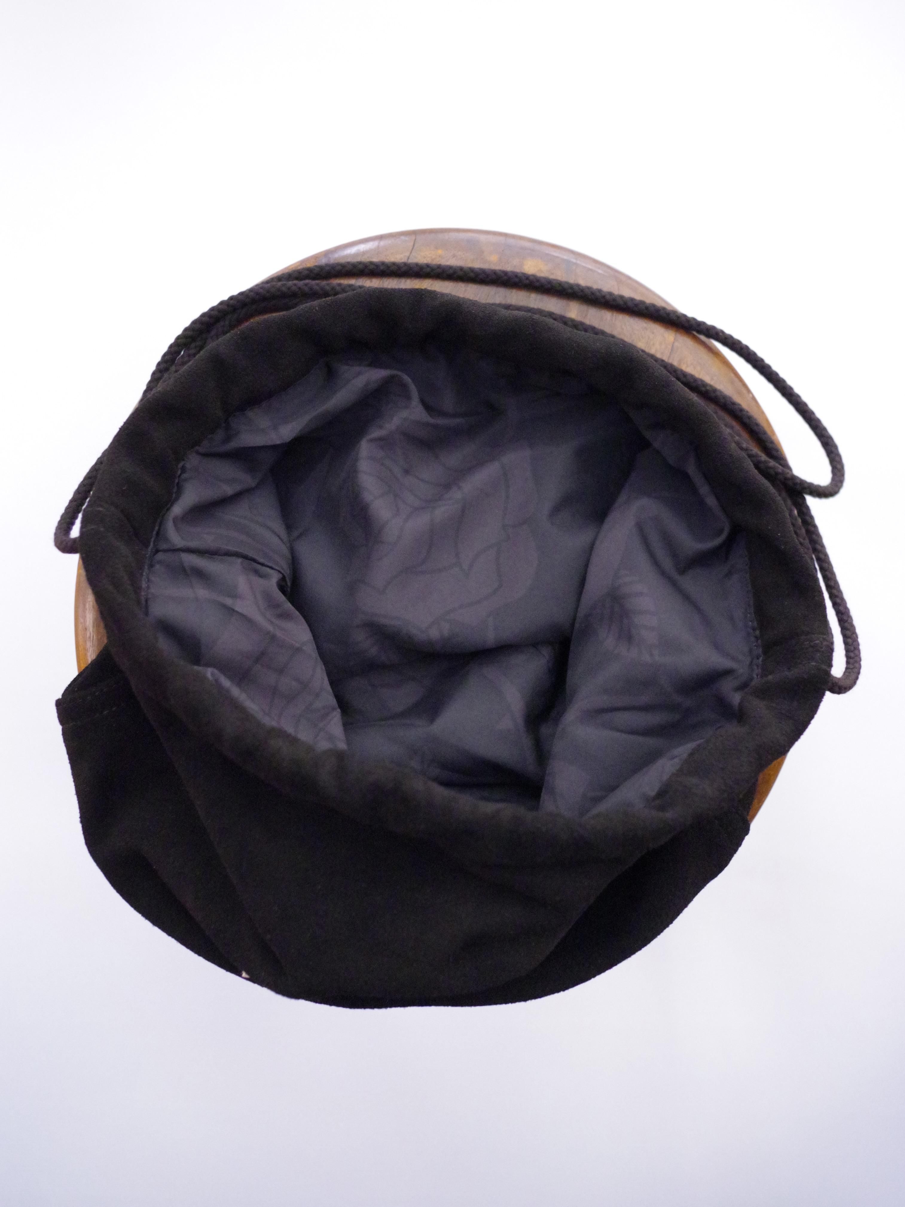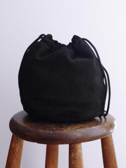 温かみのある表情が特徴で、柔軟性に優れたスウェードレザーで作成された巾着タイプのバッグです。