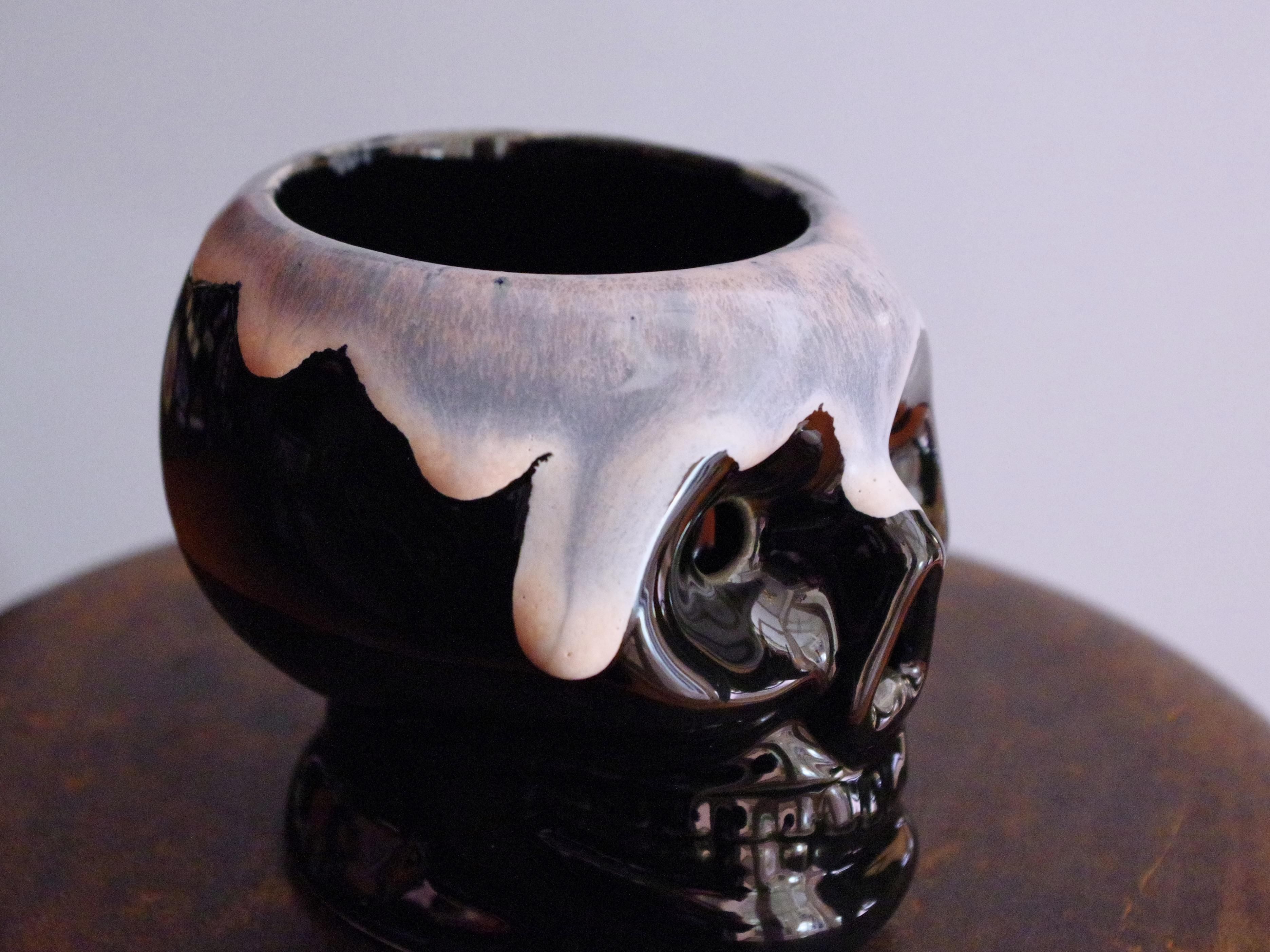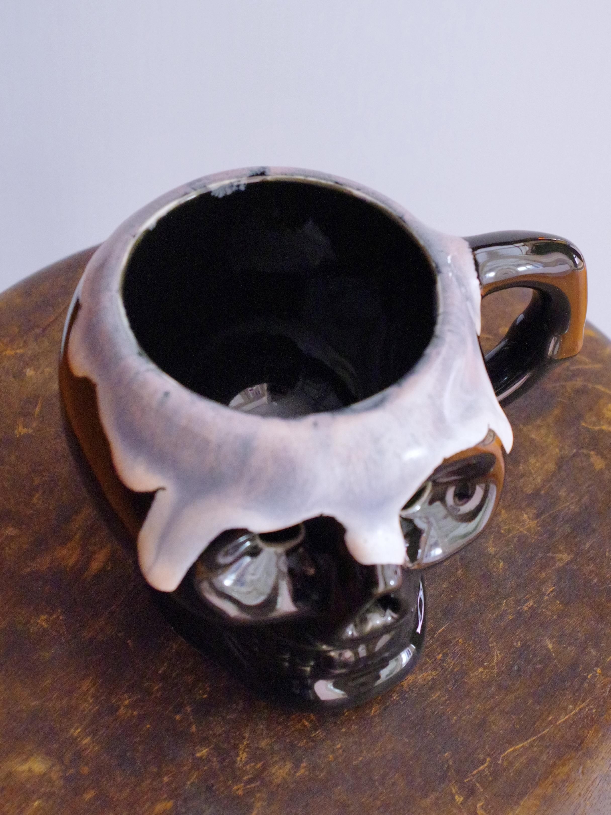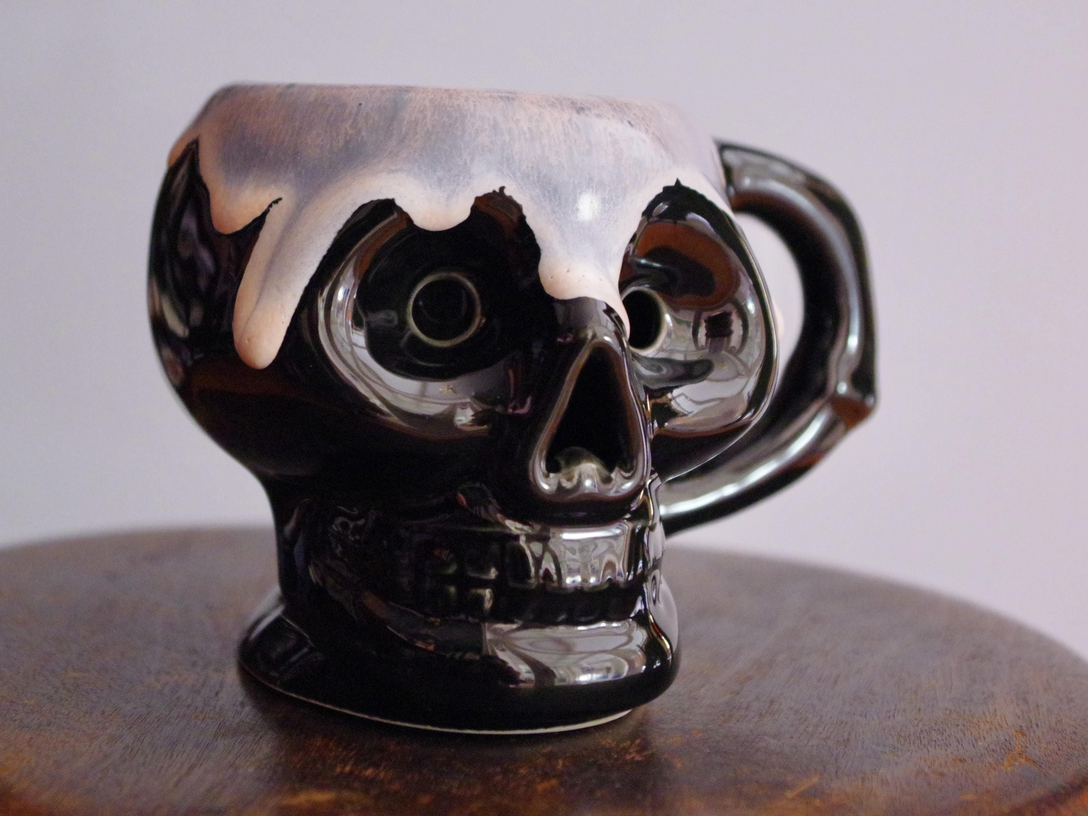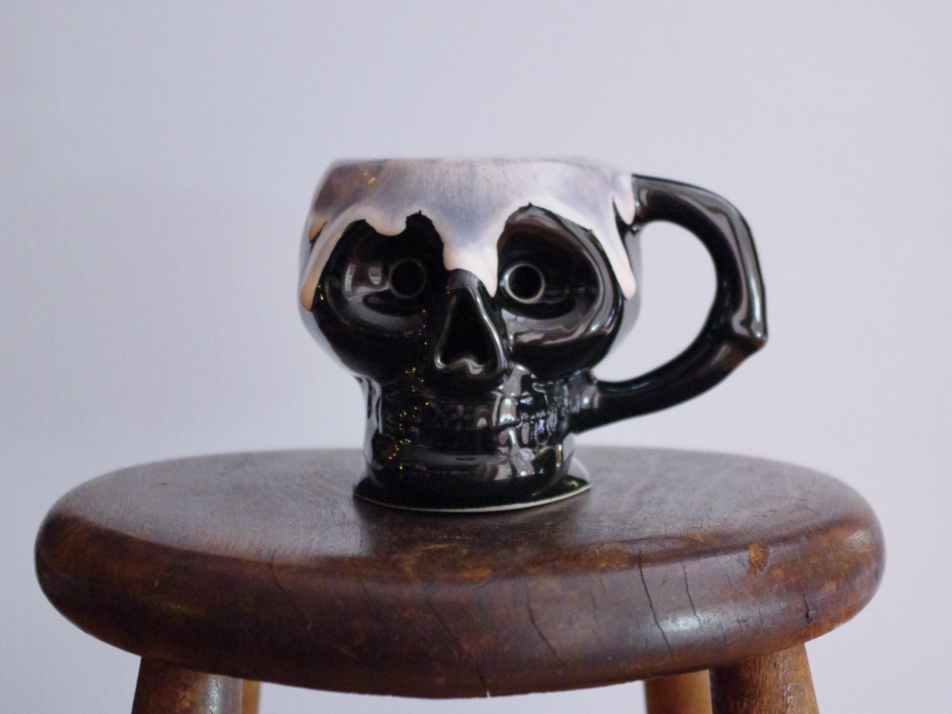 波佐見焼の窯元である菊祥陶器さんにご協力いただき今回は当時の作り方を想像しながら製作に取り組み、釉薬の開発も行い、3年以上の歳月を費やし完成したSkull Mugとなります。