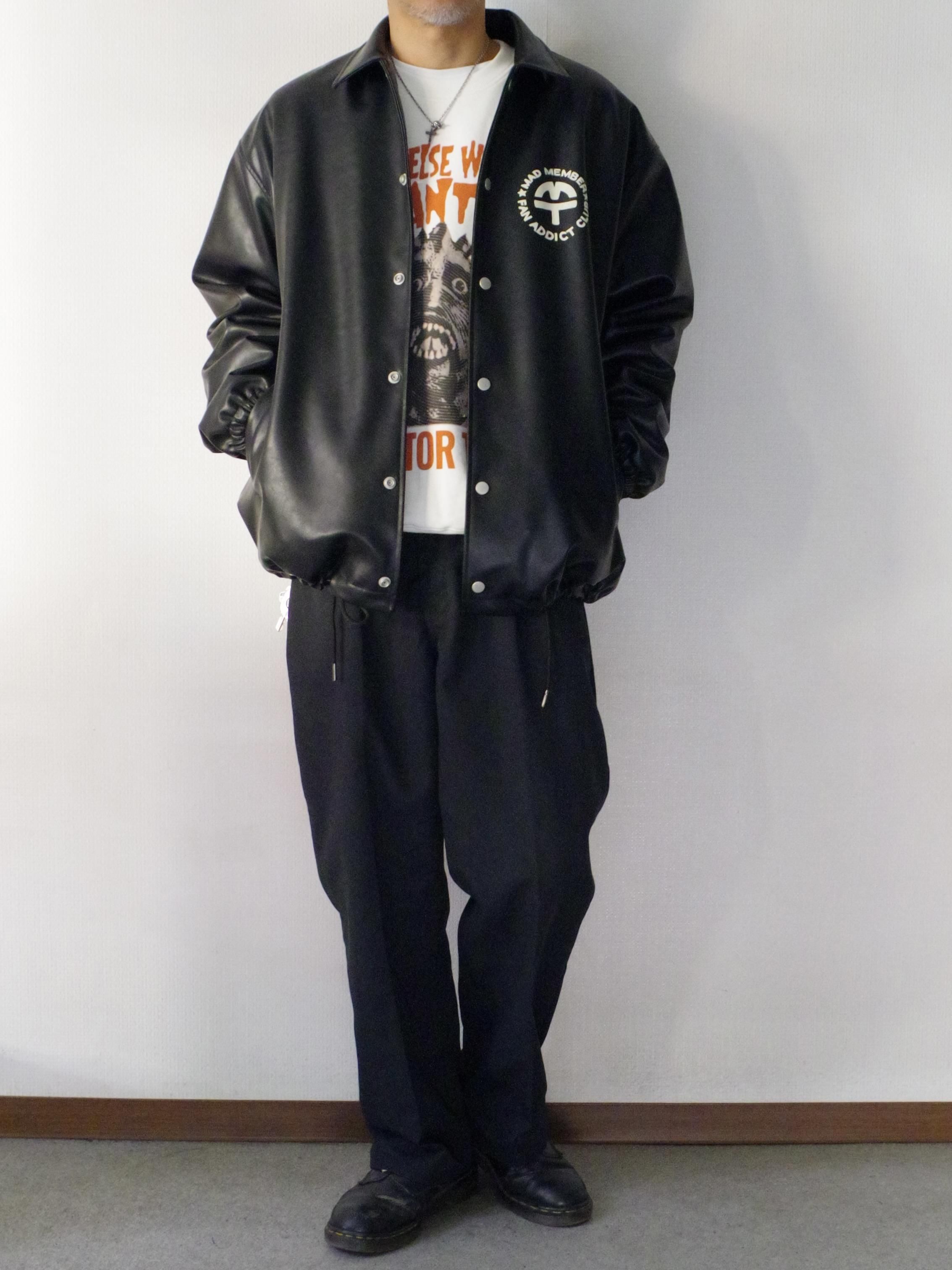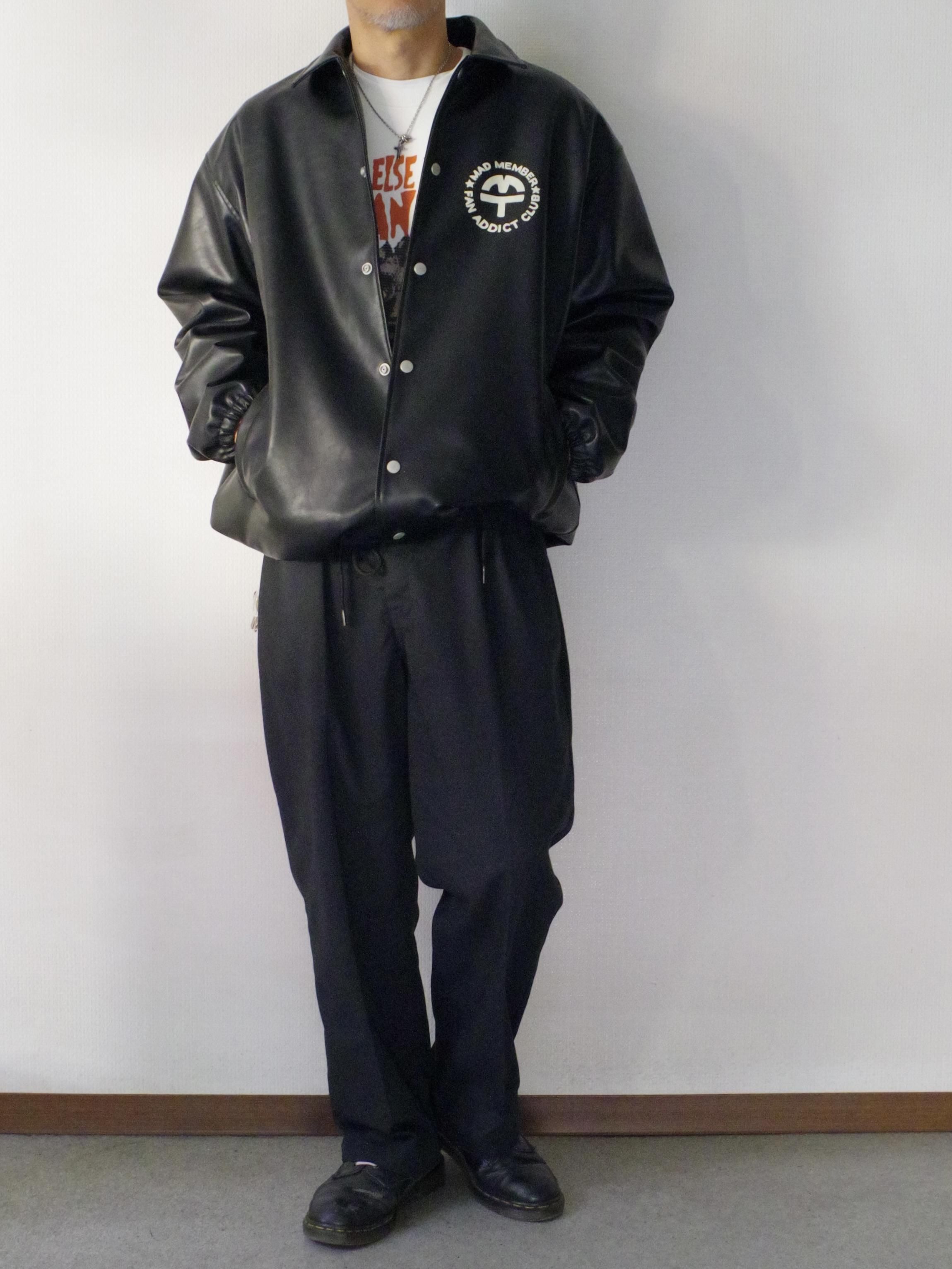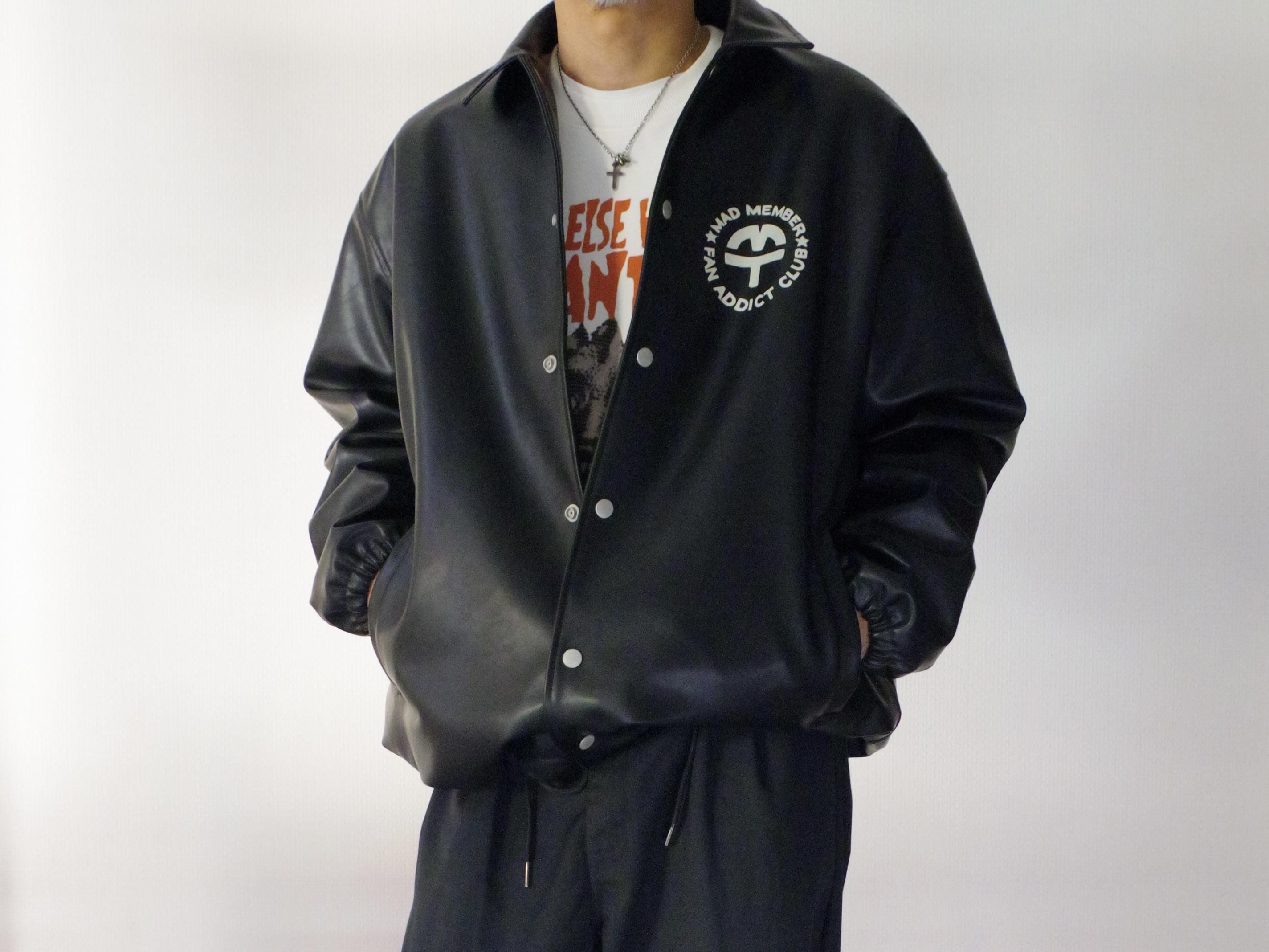 アンダーグラウンドな雰囲気漂うエコレザーを使用したコーチジャケット "MAD MEMBER FAN ADDICT CLUB JACKET"