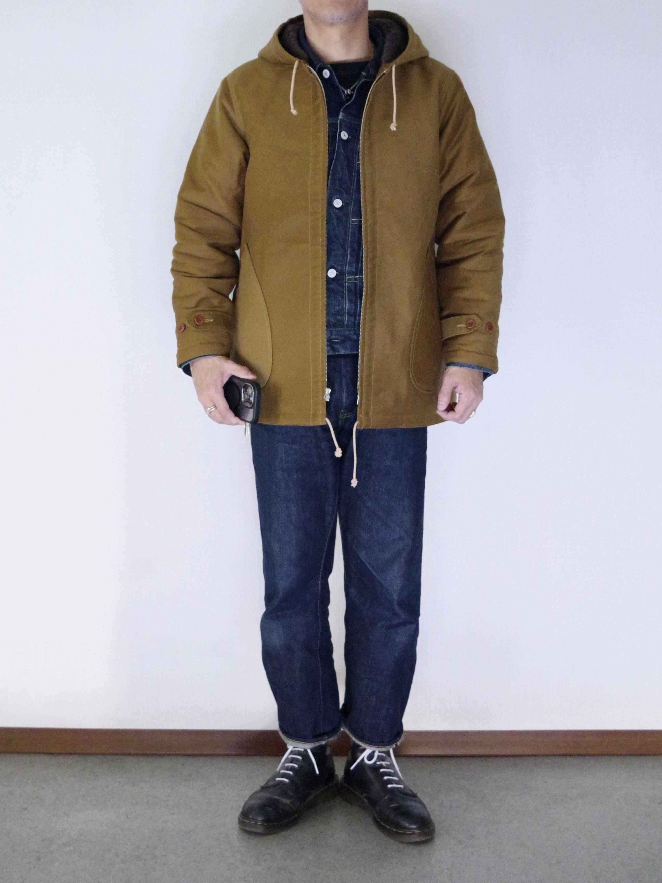 30'sのベンチウォーマージャケットをデザインベースに再構築して製作した "Classical Benchwarmer Hooded Jacket"